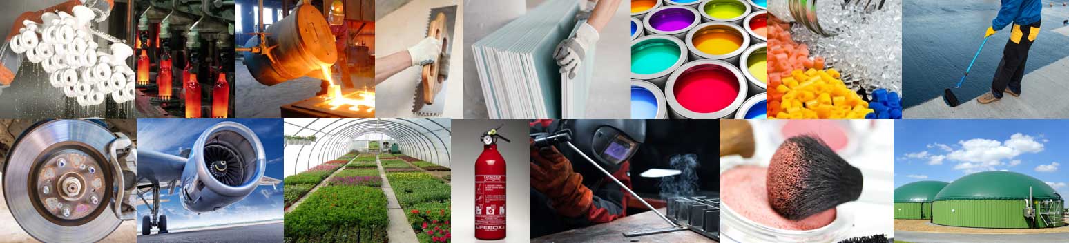 We are a supplier for a wide range of industries, including foundries (precision foundries), refractories, ceramics, glass, aeronautics, automotive, abrasives, welding electrodes, construction, packaging, and agriculture. We also serve sectors such as methanization, biogas, desulfurization, tank cleaning and inerting, horticulture, animal nutrition, fire protection products, paints, plastics, cosmetics, and decoration.